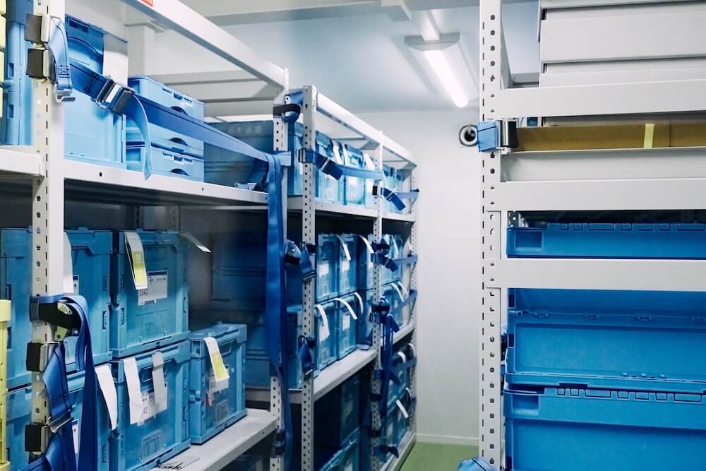 - 国立国会図書館から配送された蔵書を、リストと照らし合わせ、保管庫に格納します。